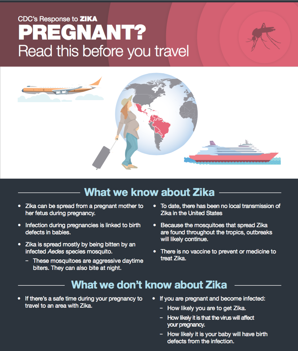 One of the problems early on in the Ebola epidemic was trying to communicate why the public should be particularly concerned about the disease. Symptoms of Ebola are similar to many other illnesses endemic to West Africa such as Lassa Fever and Malaria. It was therefore difficult for some people to understand why this particular illness warranted their attention. The symptoms of Zika (fever, rash, joint pain, and conjunctivitis) also mirror the symptoms of other illnesses endemic to many of the affected areas, including Dengue and Chikungunya. Furthermore, Zika is rarely fatal. It is therefore important to communicate (1) how to tell the difference between Zika and other illnesses (in this case through a blood test conducted by a healthcare professional), and (2) why the public should be particularly concerned about Zika.