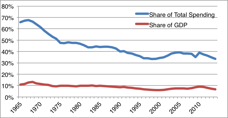 And that’s the problem. Other interests are not sufficiently represented in budget debates. As a share of the economy, public investments have been falling over time. Discretionary spending – the part of the budget that includes education, infrastructure, research, defense spending, and hundreds of other federal programs that lawmakers annual decide how much to spend on – has been falling over time, just as spending on other programs like Medicare, Medicaid, Social Security, and interest on the debt have been increasing. Certainly, this country’s safety net programs have provided incredible benefits to retirees, surviving family members, the disabled, and lower-income Americans – and a full discussion of the costs and benefits of entitlement reform is beyond the scope of this piece. But an increasing share of national resources flowing to programs that are essentially on automatic pilot threatens the resources we have to invest in other aspects of the country’s future. And while other policy debates and national priorities that are part of the U.S. discretionary budget are certainly not all investments of some sort or the other, many of them are.